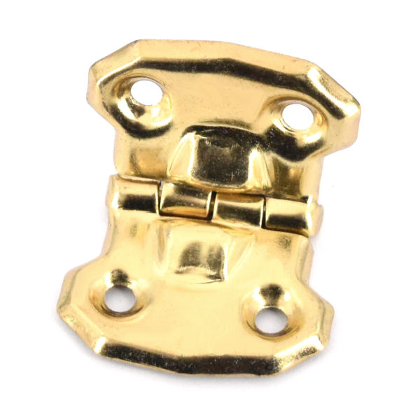 Ein mittelgroßes Scharnier für Koffer mit 90°-Öffnung aus Stahl, in der Farbe vermessingt.